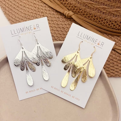 Add an eye catching glow to your day with these stylish hook earrings featuring textured leaf detail in Silver or Gold. These catch the light beautifully, an elegant pair you will wear all year round. Select your colour choice below...